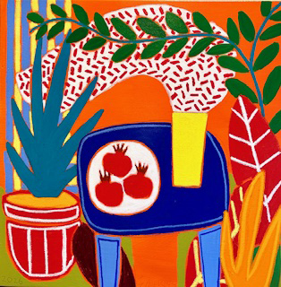 β In my work as an artist it is very important for me to explore the use of bold colors with many layers, repetition and larger then life format. I like to accentuate or exaggerate a sometimes ordinary object or image. The composition often breaks down into an imaginary world of outlines and colorful backgrounds creating depth and movement.β