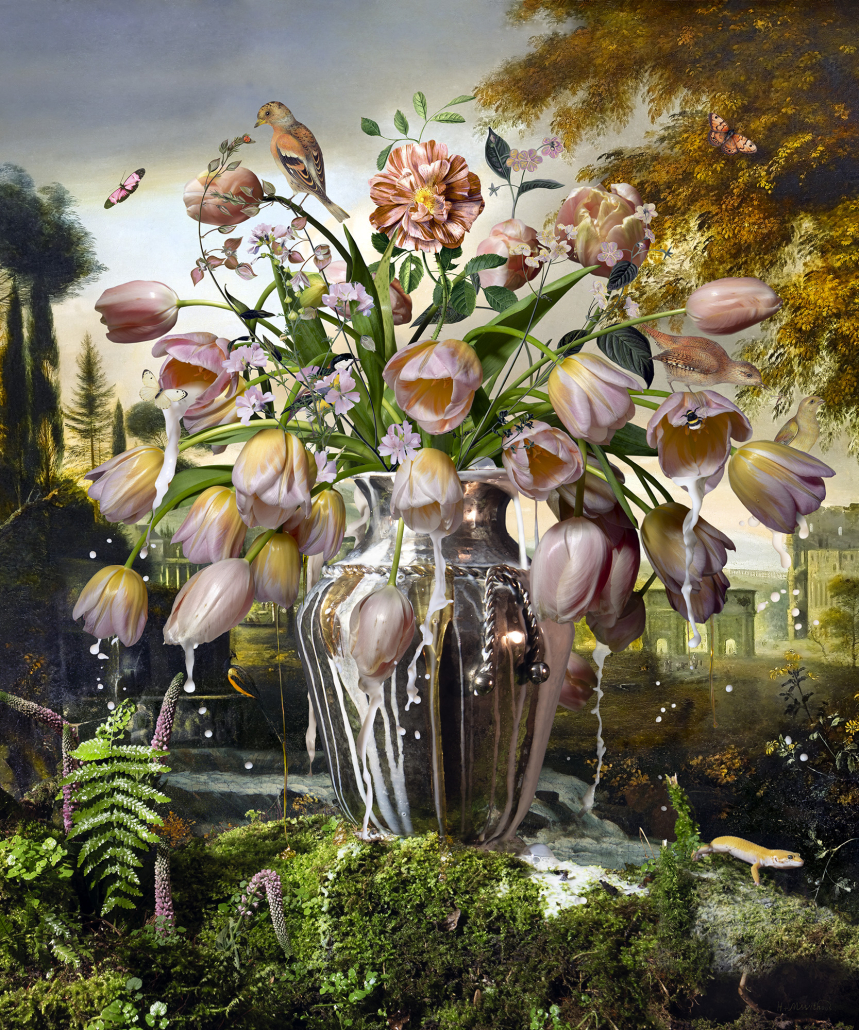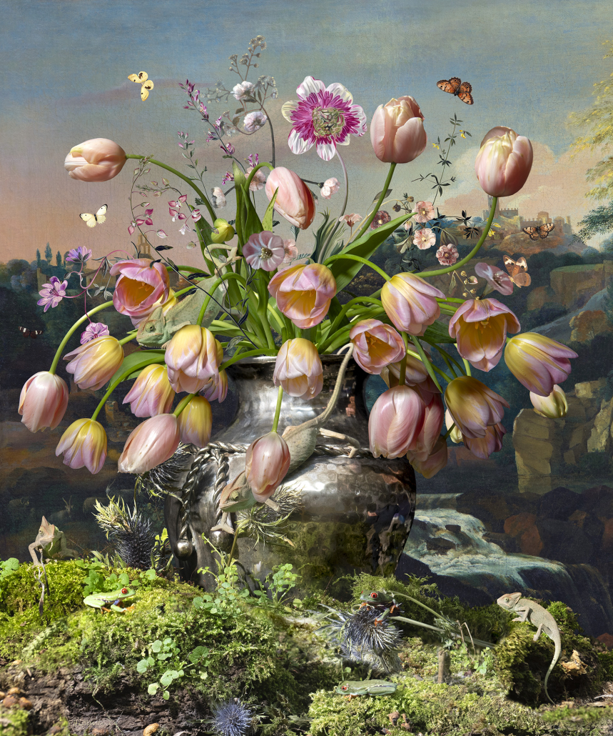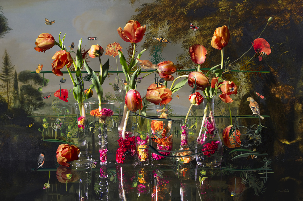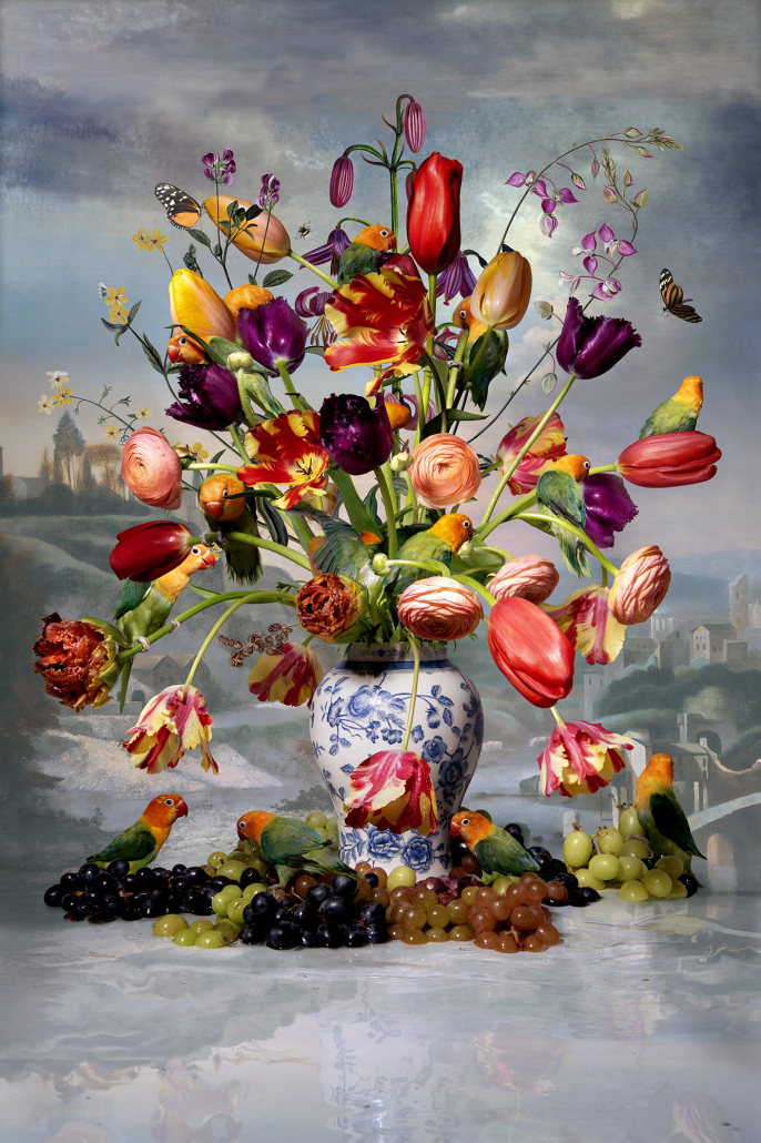 In His new series: ” Still Life” he brings the beauty and the light of the 17 century Dutch old masters into life again..